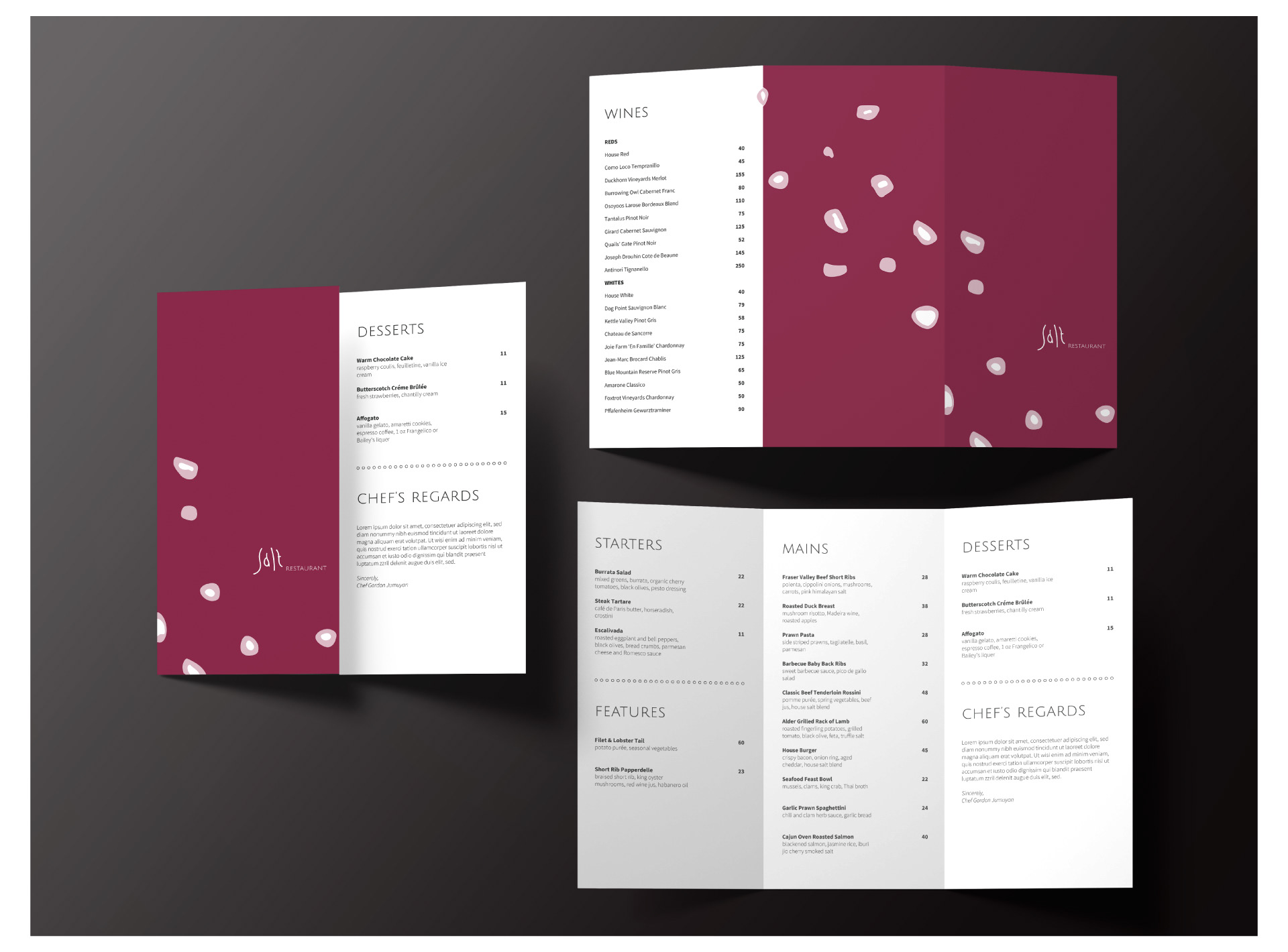 A design study for Salt Restaurant, a fictional Vancouver restaurant known for their trendy use of fine salts.
