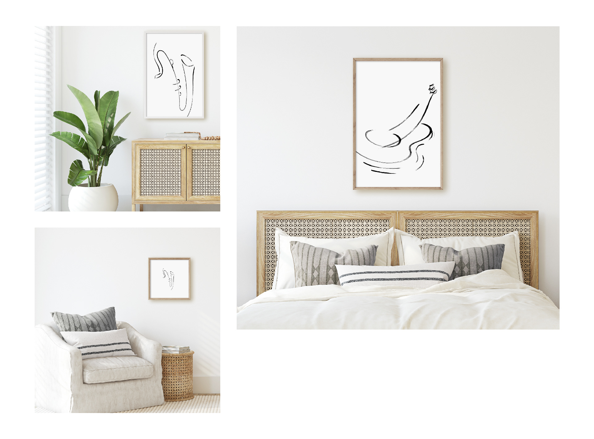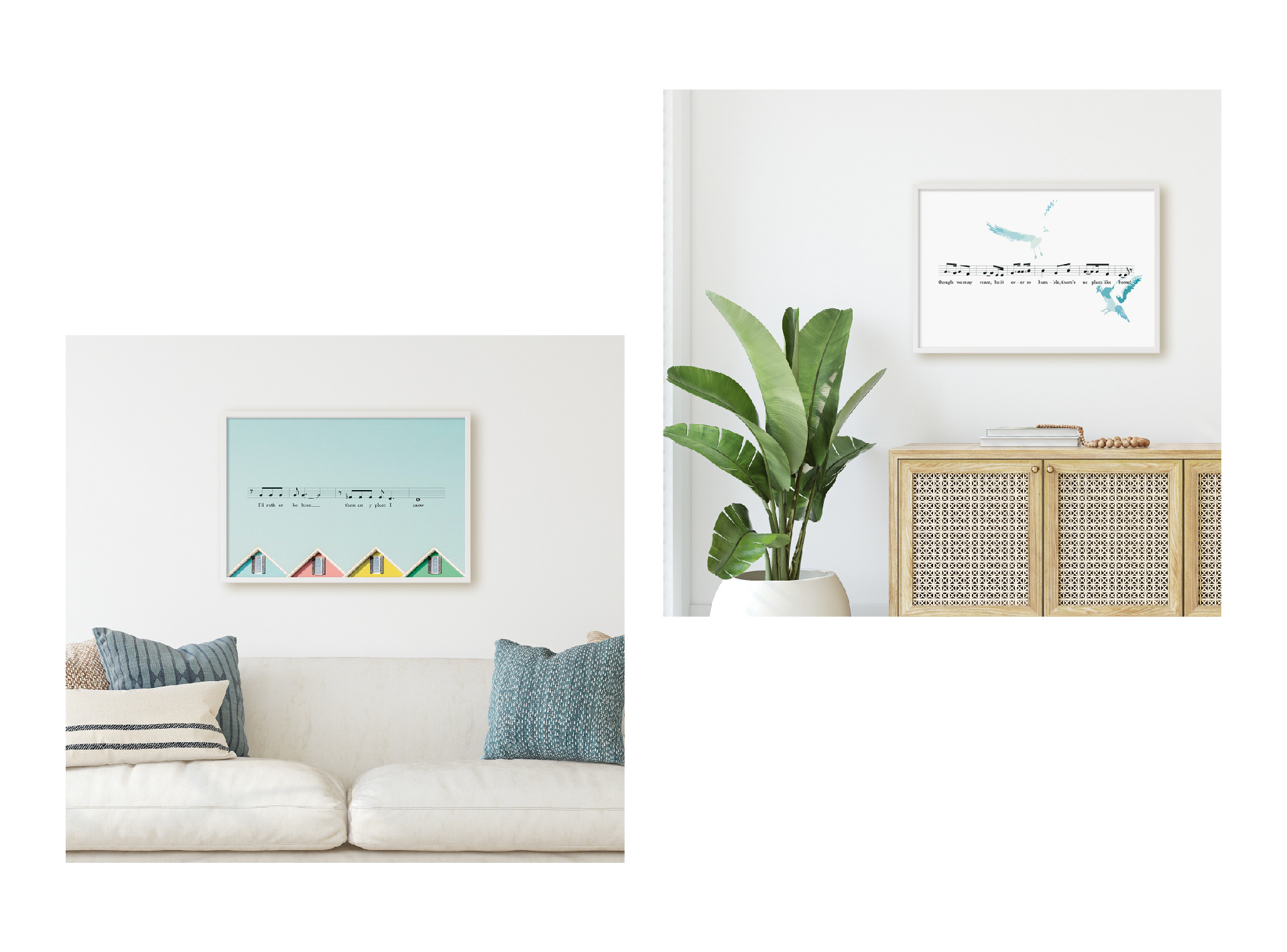 Below are examples of digital prints that I have designed. I have placed them in mockups that fit Vivace At Home's fresh, wholesome brand.